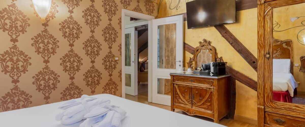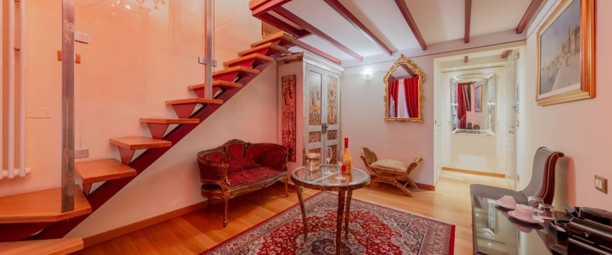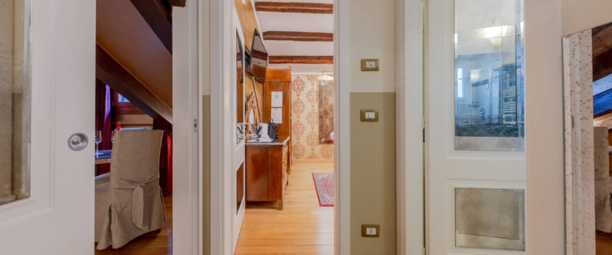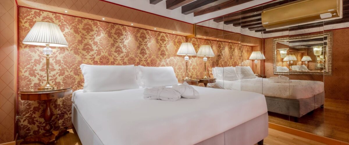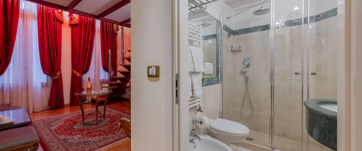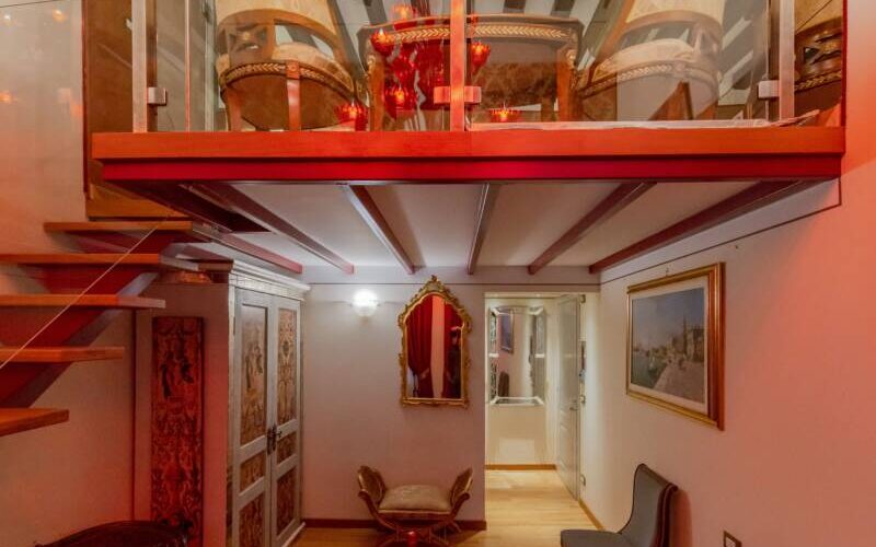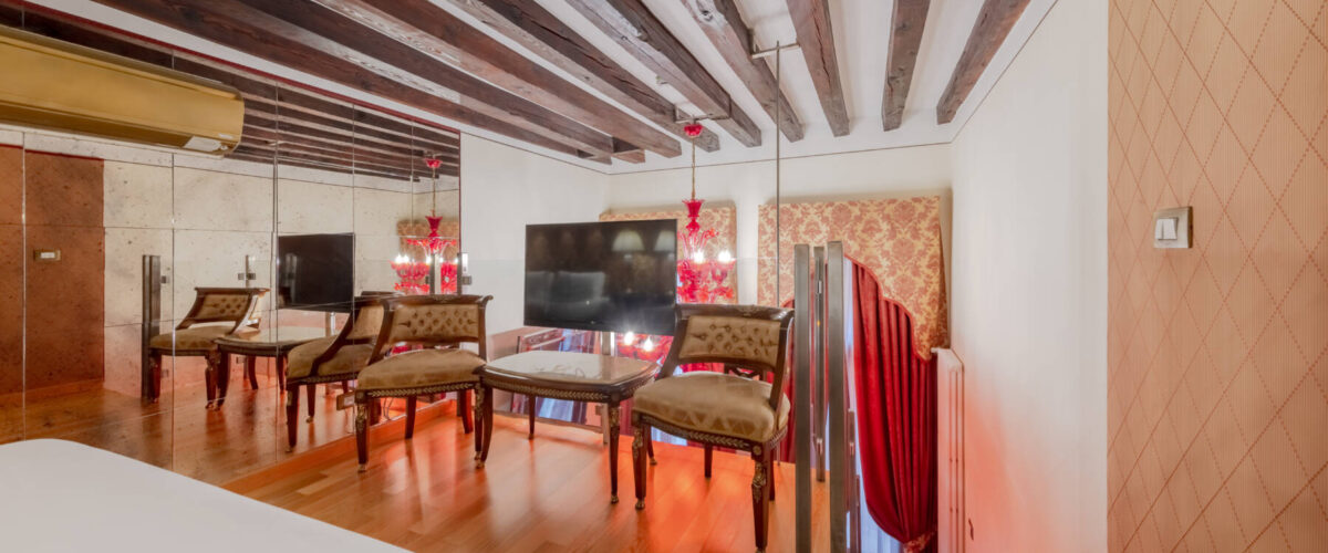 Das Betreten dieser Suite entspricht der Erfahrung, in eine Sekunde in die Umgebung und Atmosphäre des 18. Jahrhunderts in Venedig einzutauchen. Lassen Sie sich von den warmen Reflexen der Murano-Wandleuchten einhüllen und von der Suite und ihrer eleganten Einrichtung verführen.