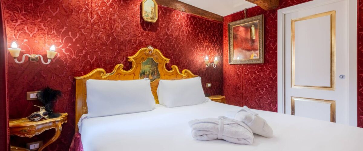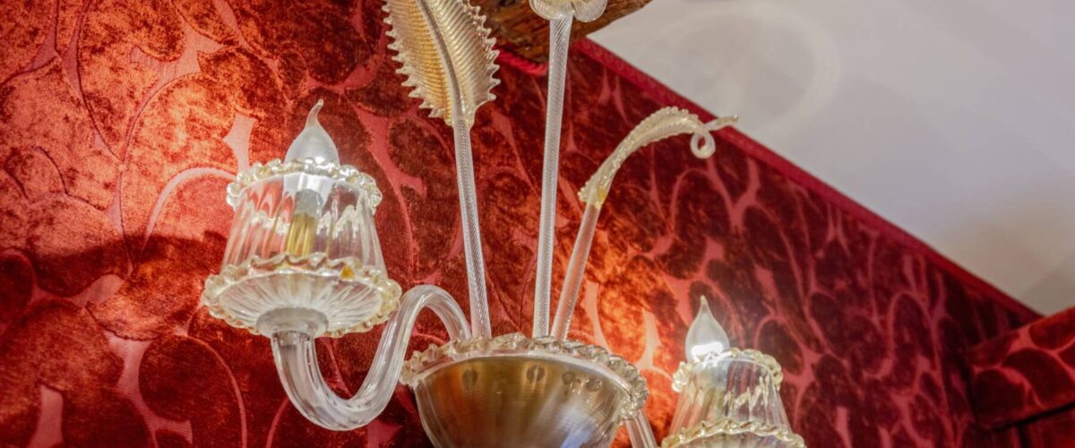 It is a room in which, between the dusty red of the velvets and the antique silver of the carved furniture and armchairs, you will relive the charm of early 18th century Venice in the light of a large Murano chandelier.